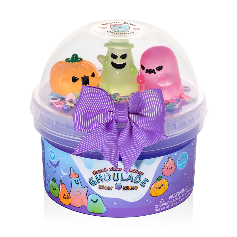 Get into the spooky spirit with Ghoulade Clear Slime! This ghoulish Slime toy will have your senses tingling with its sweet berry punch scent. Each Slime includes three collectible kawaii ghoul charms. Its thick and stretchy formula is perfect for poking and bubble pops! And with its glittery texture, it's the perfect addition to your Halloween night.