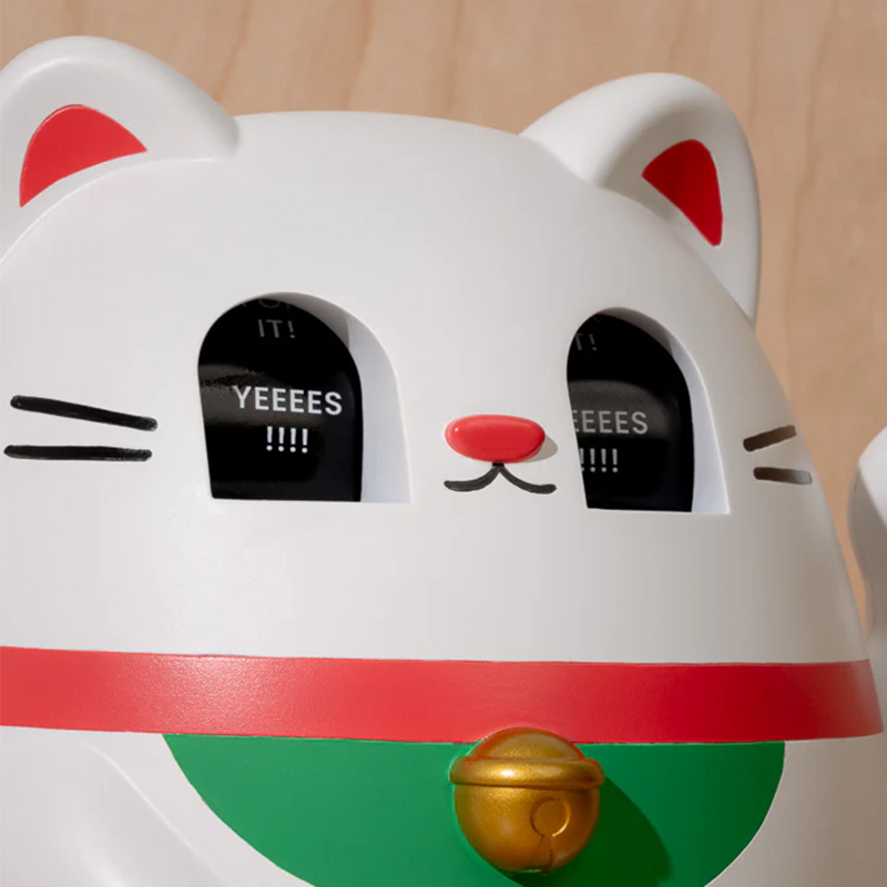 Make your wishes come true with the Magic Maneko White Lucky Cat Fortune Teller, the mystical fortune-teller kitty that unlocks the secrets of your future. Simply ask a question, pull his arm, and let his enchanted eyes reveal your truth. This charming white lucky cat brings a touch of magic to your day, whether you're seeking guidance or just looking for a fun way to make decisions. Perfect for collectors of unique novelties and believers in a little bit of destiny.