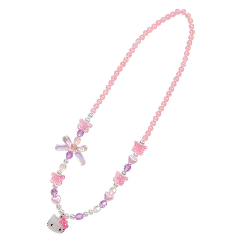 Elevate your accessory game with this enchanting Sanrio Aurora Beaded Necklace, where whimsy meets sparkle. Strung with shimmering iridescent beads in soft pastel hues, this playful piece features a beloved character charm as its centerpiece, surrounded by delightful ribbon, butterfly, and heart-shaped beads. Perfect for adding a touch of magical charm to any outfit, this necklace captures that adorable, stylish vibe that makes every day feel a little more special.