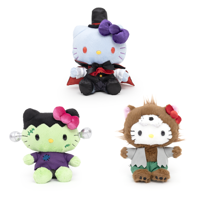 Celebrate the spooky season whenever you want with the Hello Kitty Monster Bean Dolls. This charming trio transforms the beloved character into three frightfully fun personas: a Dracula with piercing red eyes, Frankenstein's monster with the iconic bolts, and a werewolf complete with fluffy ears. Each bean doll wears its costume proudly and is finished with Hello Kitty's signature velvety bow. These soft, squeezable companions are ideal for collectors, shelf displays, or sharing with fellow Hello Kitty enthusiasts who love a touch of monster magic year-round.