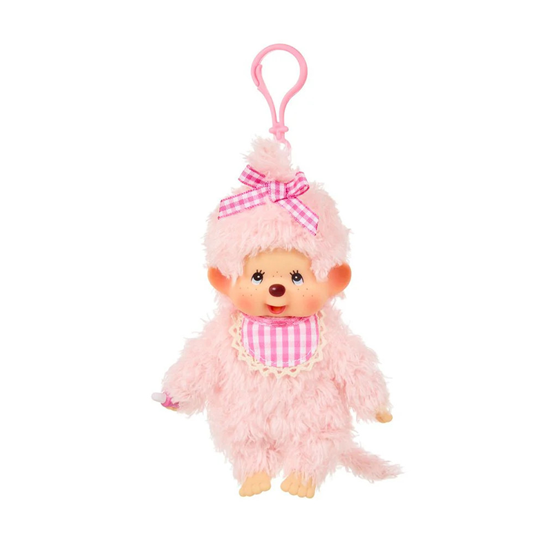 Meet your new pocket-sized companion, the Monchhichi Fluffy Pink Beige Keychain! This adorable Monchhichi girl features irresistibly soft pink fluffy fur and comes dressed in a charming pink gingham bib trimmed with delicate lace and a matching bow. She's complete with her signature pacifier, making her instantly recognizable and utterly lovable. Compact and lightweight, she's the perfect size to clip onto your keychain, backpack, or purse for a touch of kawaii charm wherever you go. Whether you're a longtime Monchhichi fan or discovering these cuties for the first time, this plush accessory brings playful nostalgia and sweetness to your everyday adventures.