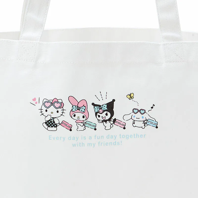 Get ready for your own fantasy trip with the Sanrio Fantasy Trip Tote Bag! Travel with ease and carry all of your essentials in style with this vibrant and pastel tote featuring all your favorite Sanrio characters. With two different designs on each side, it's perfect for any trip, big or small.
