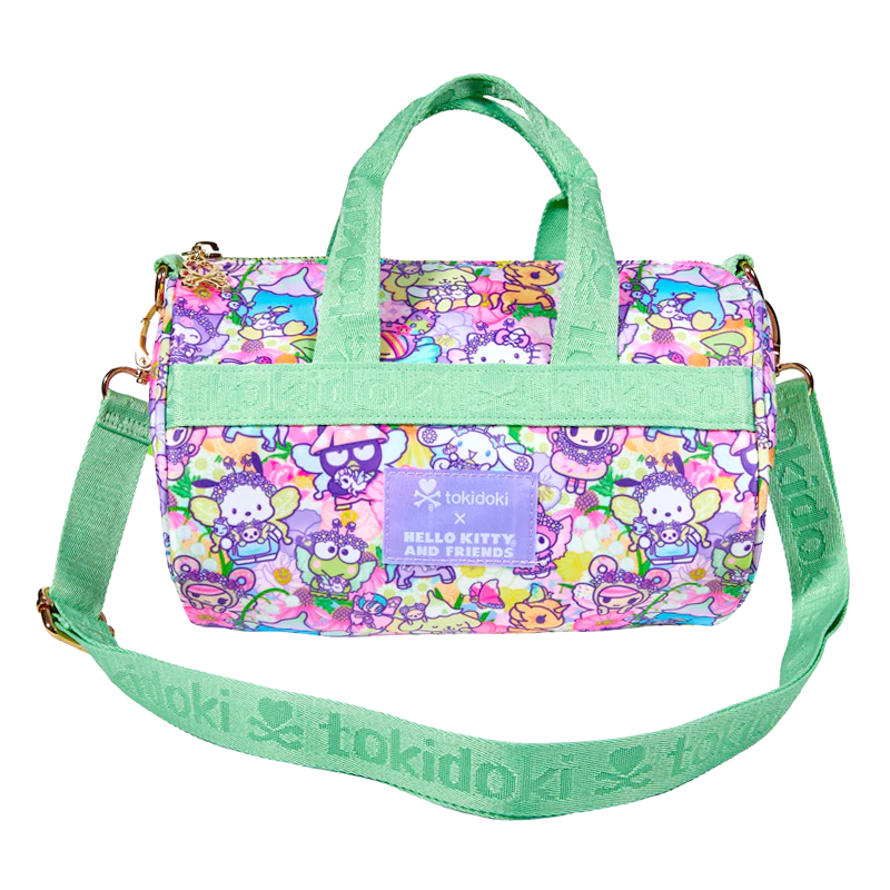 Let cuteness take flight with the tokidoki x Hello Kitty and Friends Butterfly Garden Mini Duffel Bag! This whimsical collaboration features tokidoki and Sanrio characters on a pastel butterfly garden pattern that brings sweet, playful charm to your everyday carry. The bag boasts a heart crossbones zipper pull, soft lavender lining, and an adjustable strap for comfortable wear. Perfect for fans of adorable, vibrant style, this mini duffel combines functionality with collectible appeal. Watch your accessories flutter with personality!