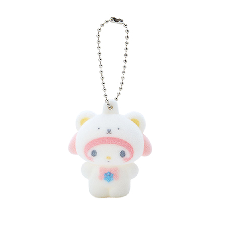 This Sanrio Fluffy White Bear Keychain Blind Box series features Hello Kitty, Kuromi, My Melody, Pochacco, Pompompurin, My Sweet Piano, Cinnamoroll, and Tuxedosam dressed in fluffy white bear outfits! Each one is made with premium flocking, giving each charm a nice fuzzy texture. Comes with a silver ball chain keychain so you can attach to your bag or keys.