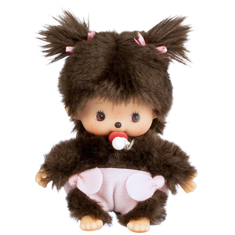 Introducing Bebichhichi - the adorable Monchhichi babies! This Monchhichi Classic Girl Bebichhichi Plush is perfect for cuddles and adventures with its fluffy body and plastic head, hands, and feet. Comes with a working pacifier and even has the ability to suck on its thumb.
