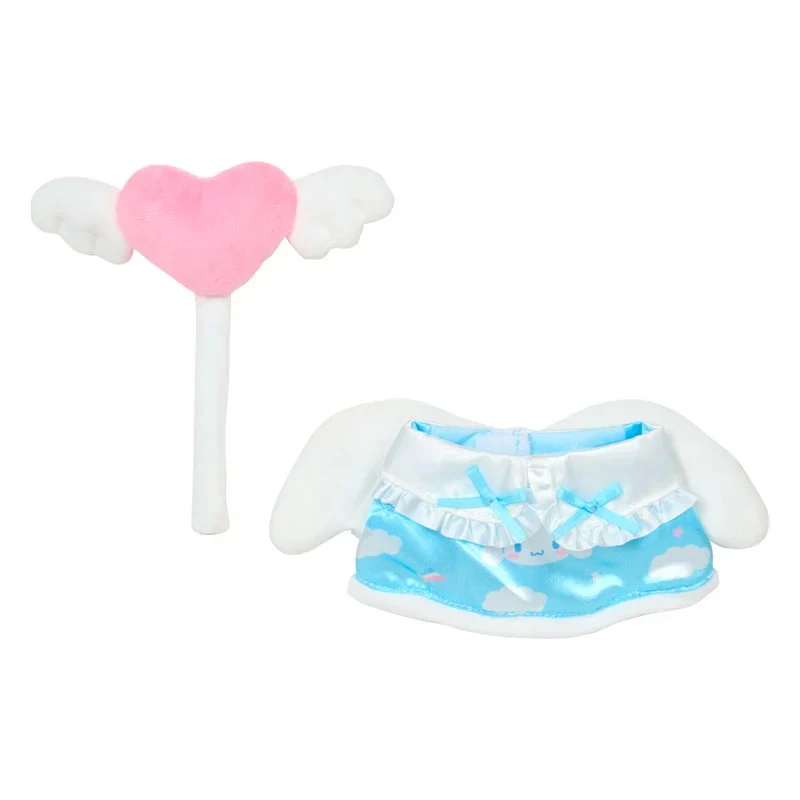 Dress up your Sanrio friends in the Sanrio Pitatto Friends Medium Dress Up Doll Cinnamoroll Angel Outfit! Featuring a frilly collar, ribbons, and a heart wand, this cute outfit will bring a touch of magic to your day and offer endless delights!