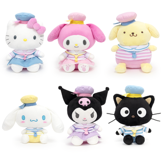 The Sanrio Pastel Sailor 8" Plush is perfect for any sailor at heart! Featuring cute Sanrio Characters in striped pastel sailor outfits with matching hats, these plush are ready to join you on all your nautical adventures. Great for displaying and cuddling, these plush are ready to sail away with you in style!