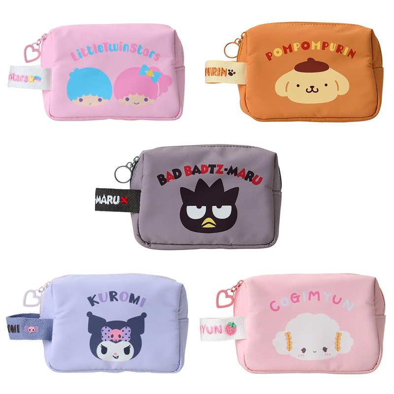 Slip your essentials into these delightful Sanrio Mini Handy Pouches and brighten up your daily routine. Bursting with color, this charming accessory keeps your everyday items safe and organized in one adorable package. The playful heart-shaped zipper pull adds a sweet touch, while the matching embroidered strap makes it easy to carry your favorite Sanrio character wherever you go. Perfect for stashing cosmetics, cables, accessories, or anything else you need close at hand.
