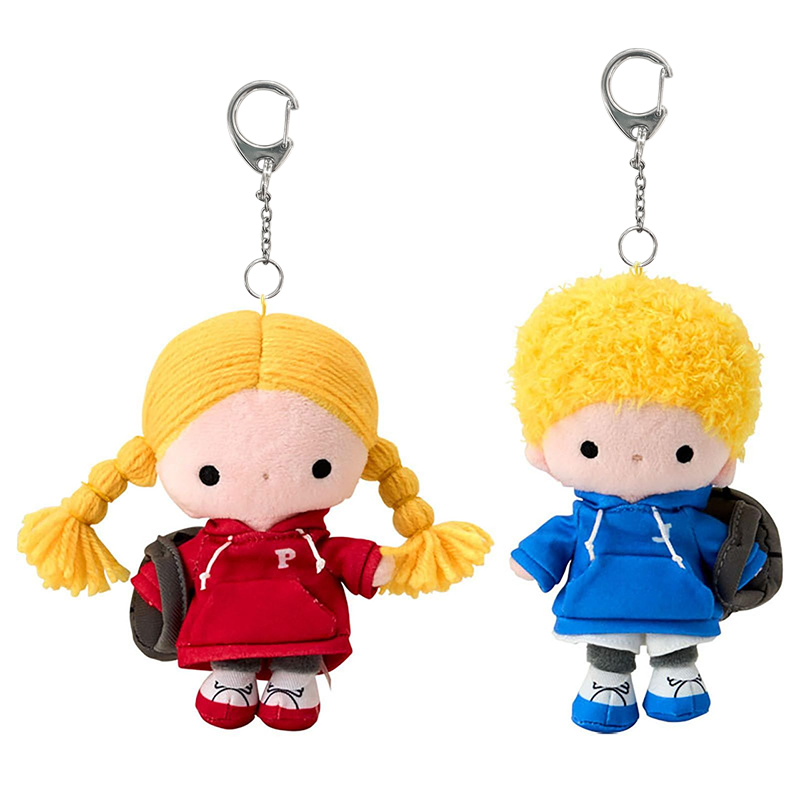 Meet Sanrio's adorable vintage stars Patty & Jimmy and The Vaudeville Duo! These charming plush keychain sets feature Patty & Jimmy and Eddy and Emma (The Vaudeville Duo) dressed in stylish outfits. These nostalgic cuties are here to bring a touch of classic charm to your keys, bags, or collection. Perfect for Sanrio enthusiasts who appreciate the lesser-known characters and love a dash of old-school whimsy. Compact yet collectible, these plush keychains are your ticket to carrying a piece of Sanrio history wherever you go!