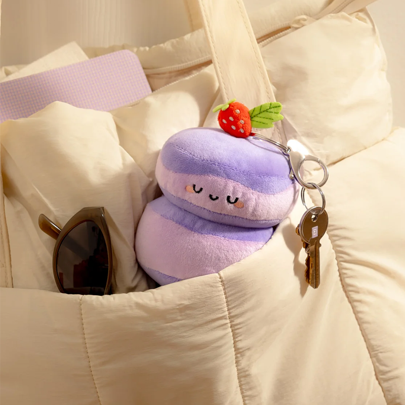 Meet Sofia in her most delicious form yet with the Sofia Souffle Ube Pancake Bag Charm, a fluffy ube souffle pancake that's way too cute to eat! This adorable bag charm features Sofia's signature tiny smile and rosy cheeks rendered in gorgeous purple hues, capturing all the charm of a brunch-time dream. Soft, squishy, and perfectly pint-sized, she's the ideal companion for your keys, bag, or backpack. Whether you're a pancake enthusiast or just love collecting kawaii accessories, Sofia's ube transformation brings a touch of whimsical sweetness to your everyday carry!