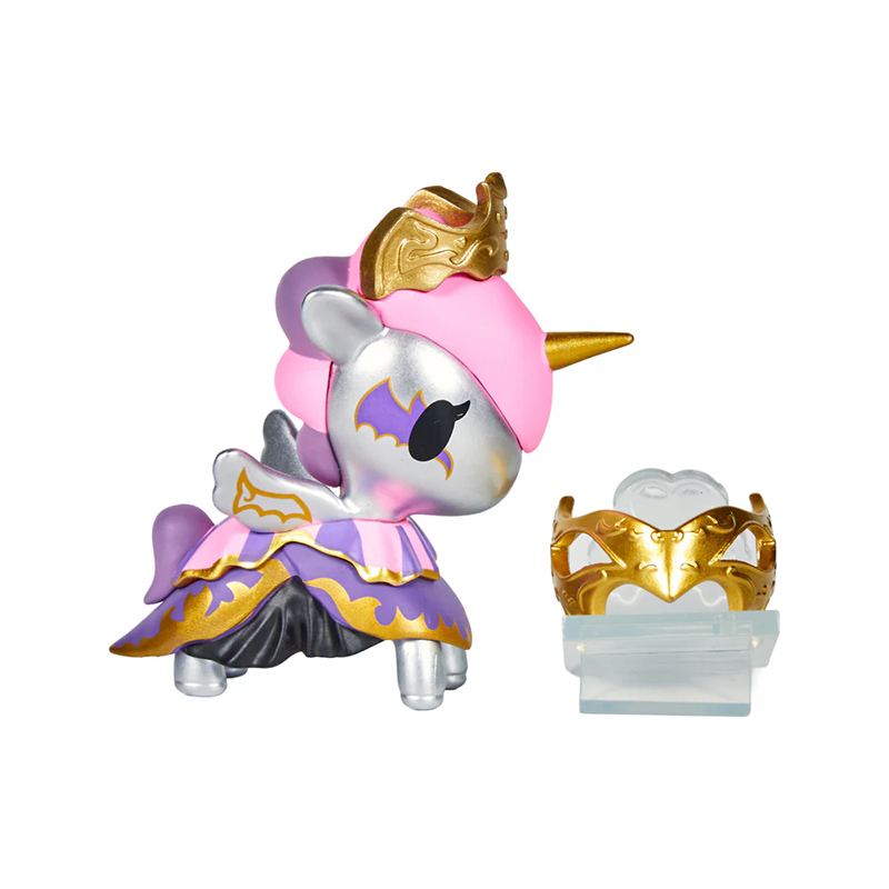 Step into the enchanted world of the Masquerade Unicorno Blind Box! Each mystical unicorn arrives dressed in a dazzling, ornate costume fit for a grand masquerade ball. The magic doesn't stop there—every figure includes a magnetic mask that clips on and off, letting you customize your Unicorno's look or display it separately on the included stand. Perfect for collectors who love a touch of whimsy and mystery!