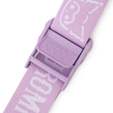 Shop for the cutest belt! This light purple Kuromi JapanLA Logo Belt features Kuromi's Face and name woven along the entire belt. Tighten it with the custom JapanLA embossed metal buckle. With the long length, you can wear it in so many cute different styles!